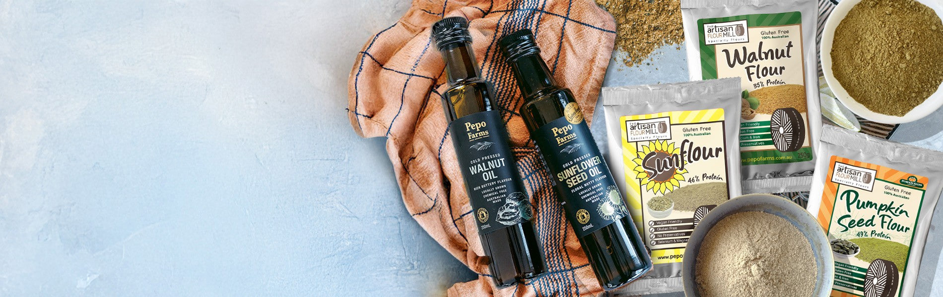 Our oils, flours, snacks and seeds are created from nutrient-dense Australian produce, processed gently and packed fresh at our farm.