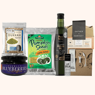 Does someone you know need some pampering? Make their day with our Pamper and Graze special! Treat them to locally produced skincare that will help rejuvenate, unwind, and take a breather. Make grazing boards extra special with some Pepo Farms favourites and Gamila's signature pickled blueberries perfect for indulging, grazing, and savouring.  This is something they'll truly love!