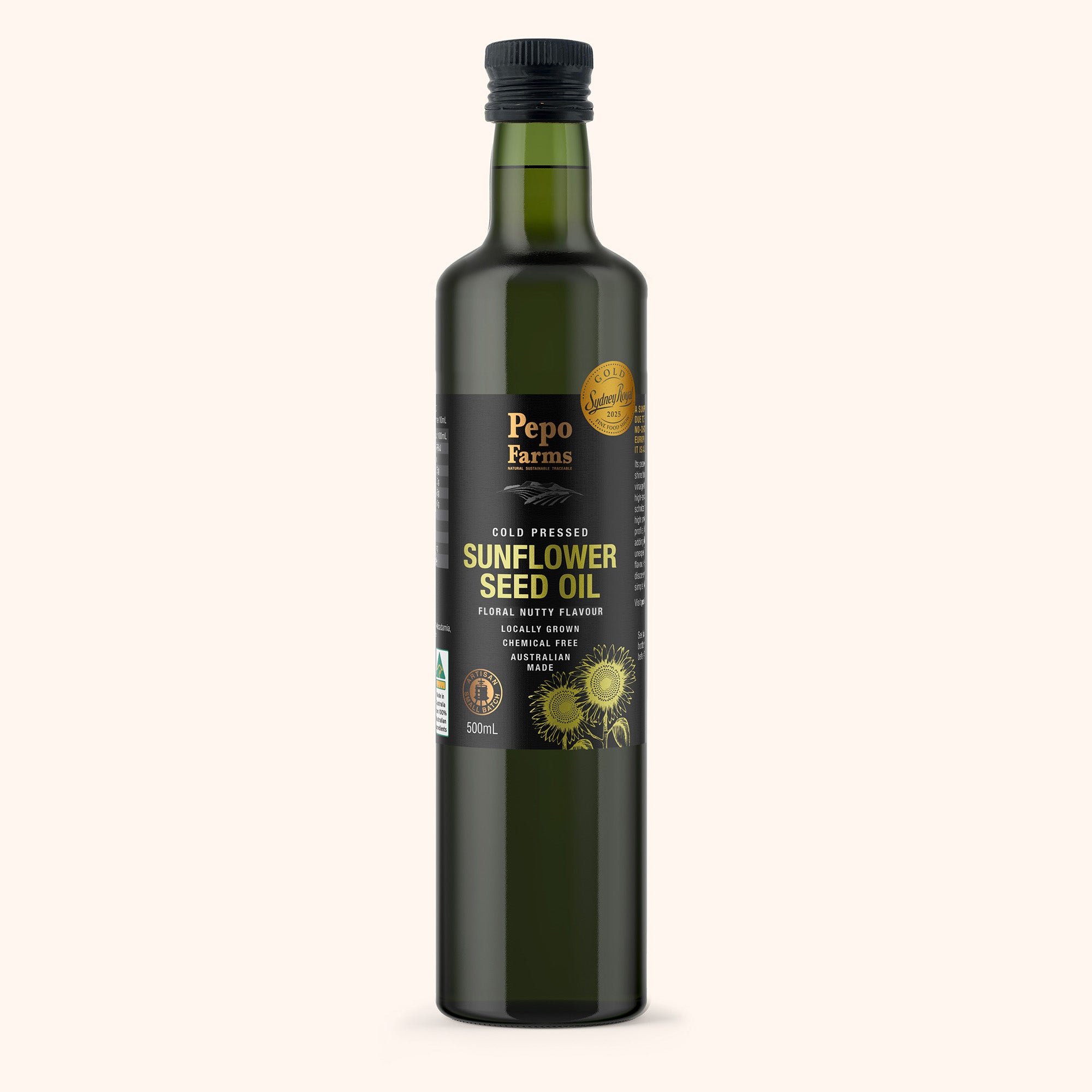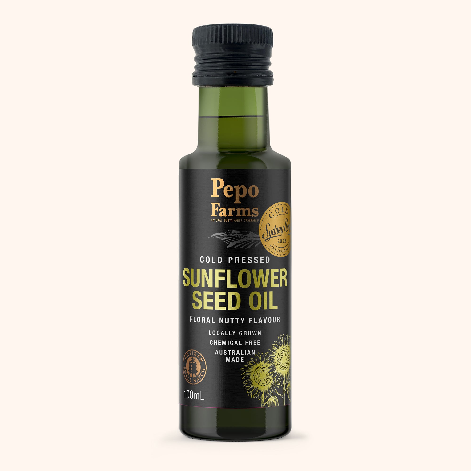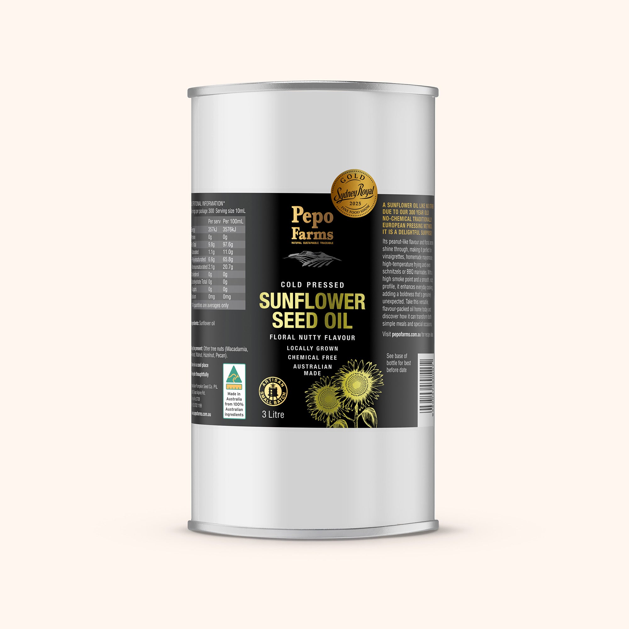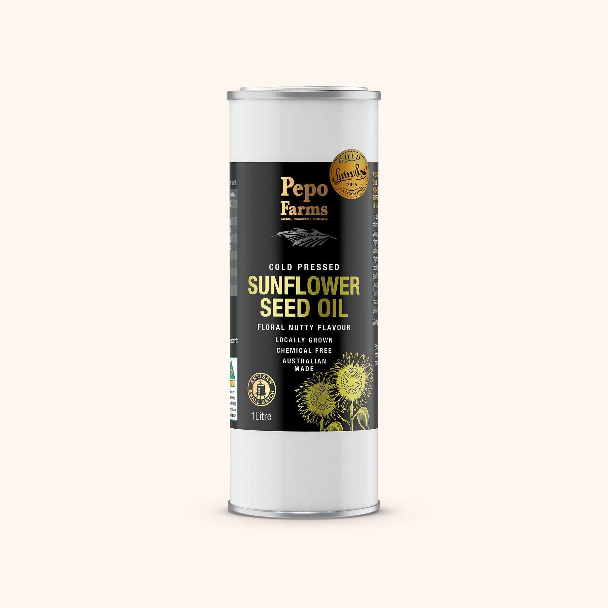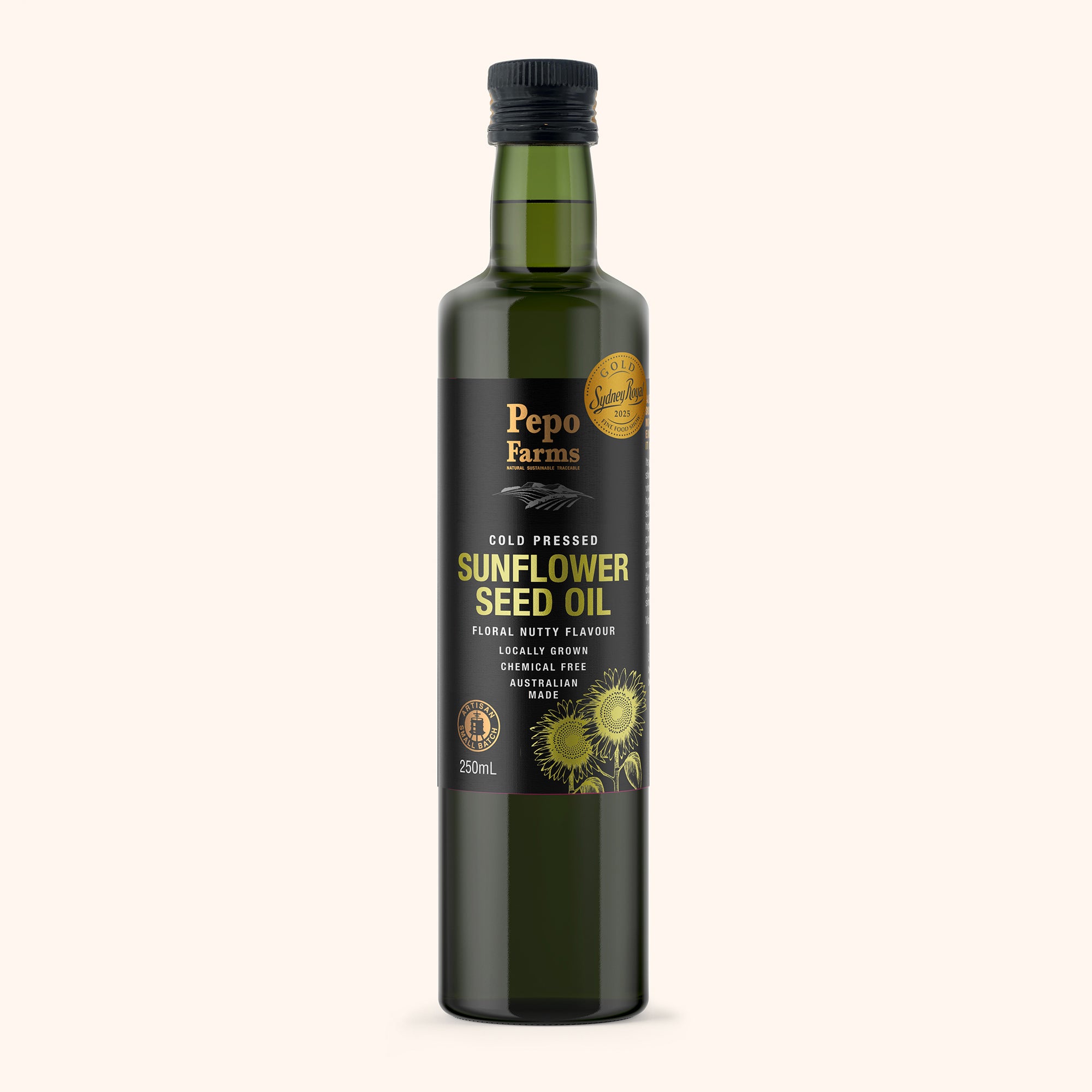 Cold-pressed the traditional way from local Australian sunflowers, this golden oil carries a light, nutty flavour that’s versatile in every kitchen. Its smooth finish makes it ideal for dressings, marinades, and high-temperature cooking, while a drizzle adds depth to vegetables, eggs, or pasta. Recognised with a Gold Medal at the Sydney Royal Show 2025, our Sunflower Oil is a true standout of regional produce and artisan skill. Bring home the award-winning taste of sunshine today.