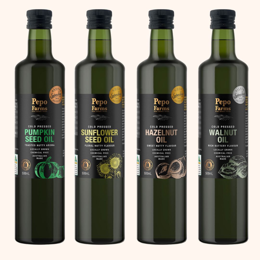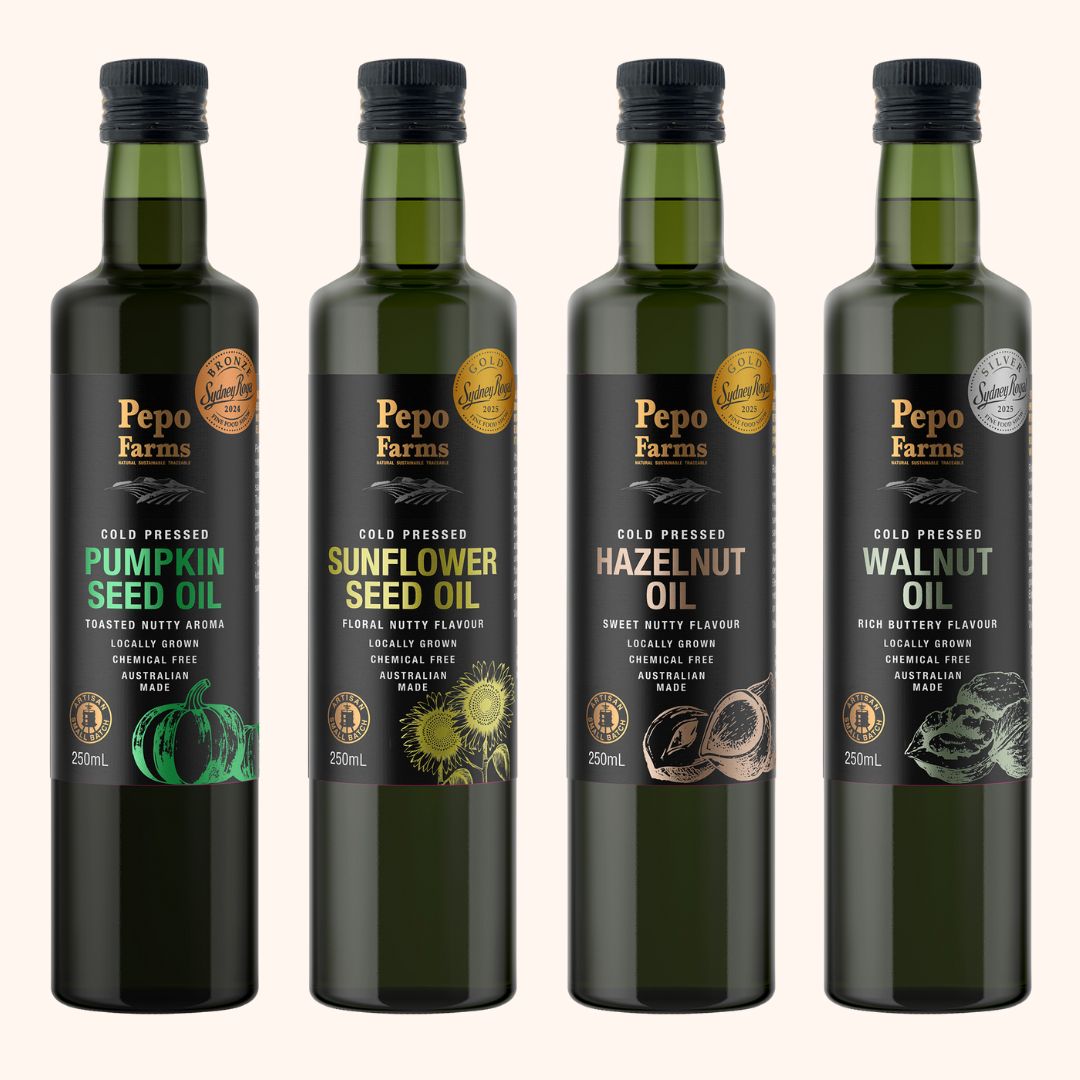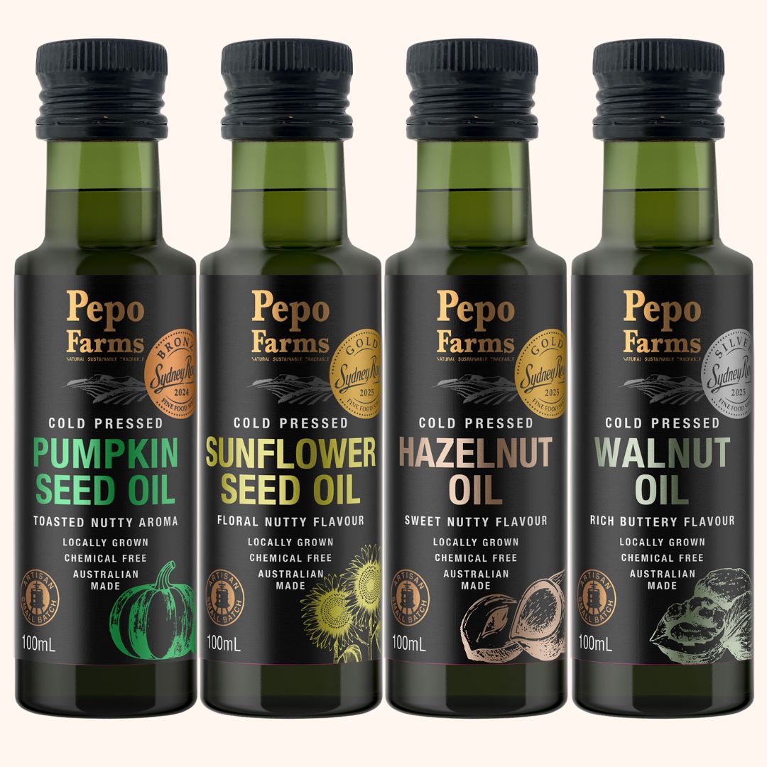 Crafted with traditional European pressing methods and 100% Australian-grown seeds and nuts, Pepo Farms’ oils deliver depth, nourishment, and a touch of indulgence to every dish. Our Sydney Royal Show medal-winning range proves that careful, small-batch pressing makes all the difference.
