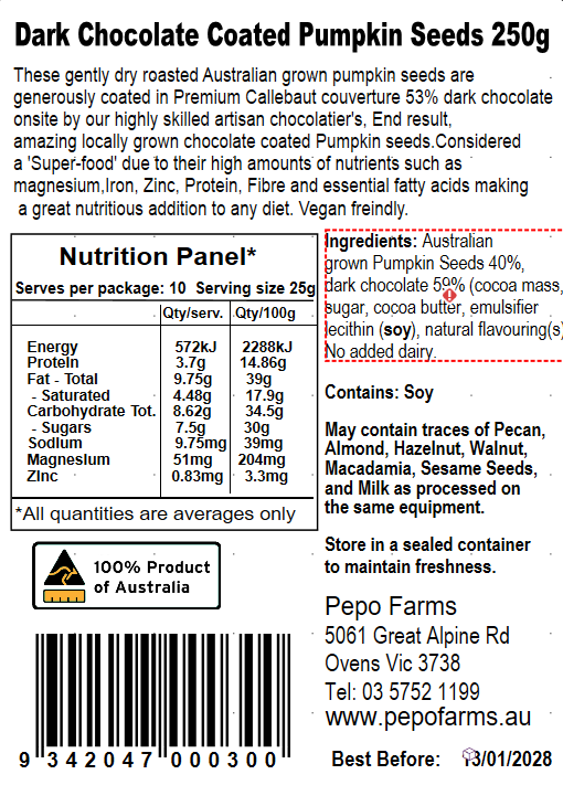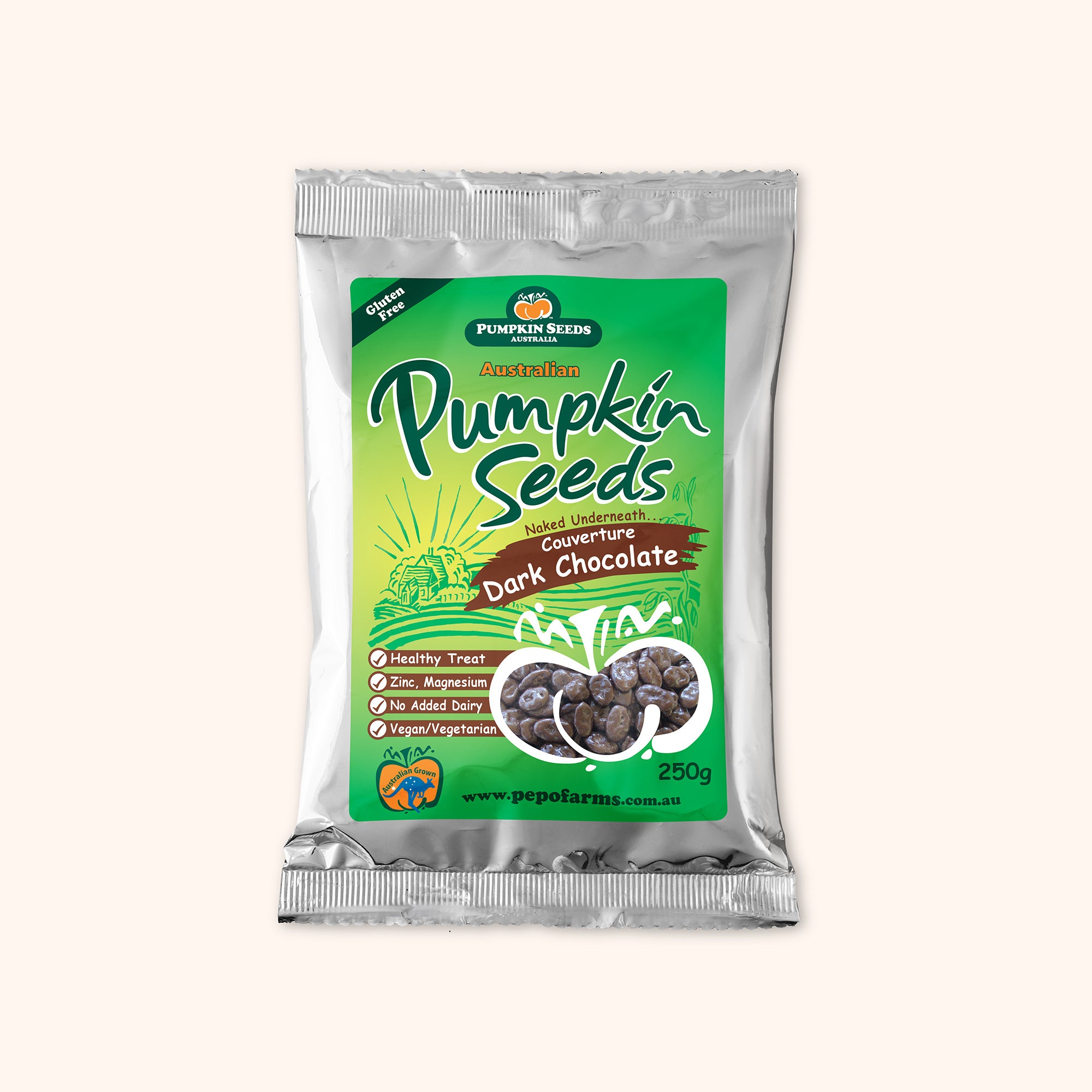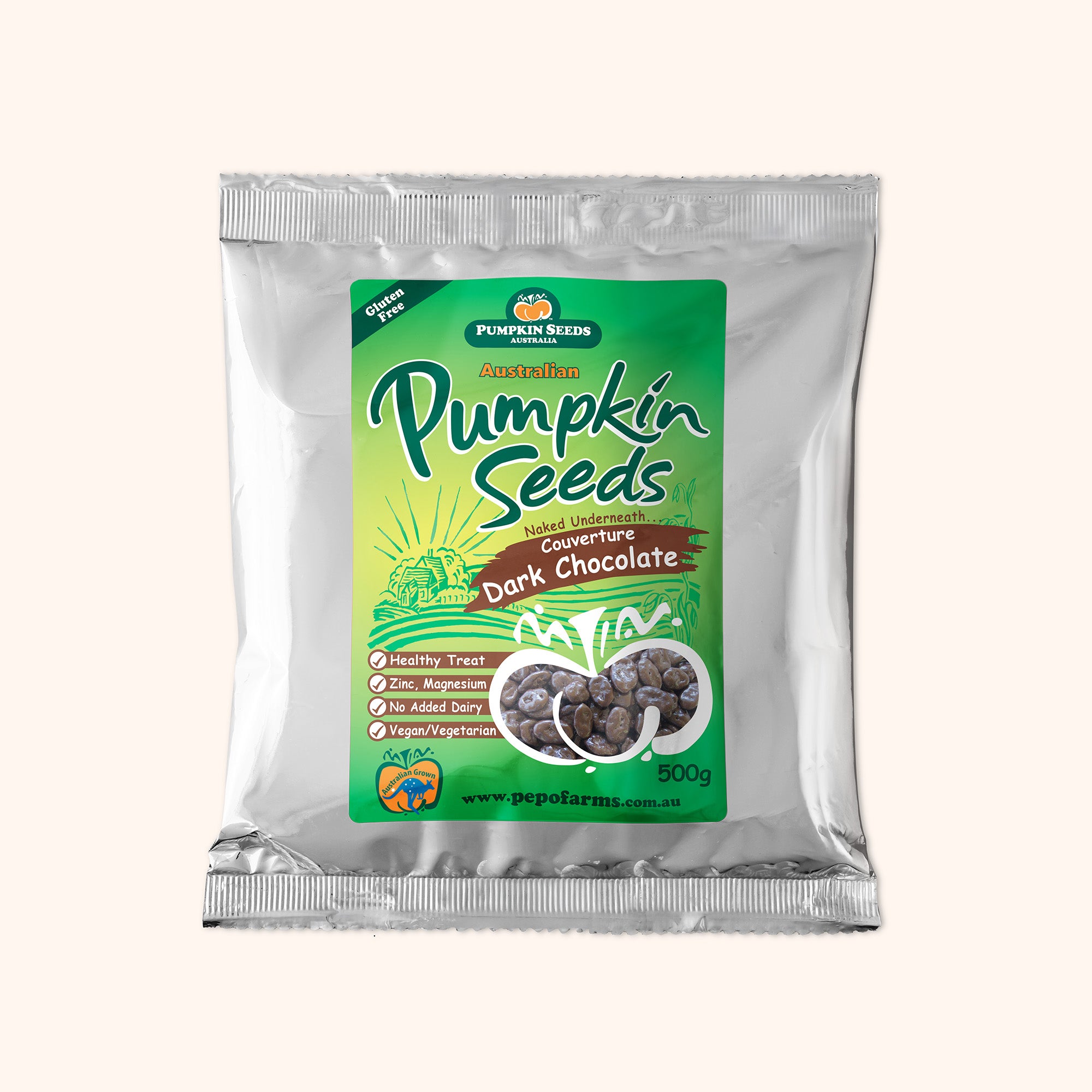 They’re made with the only Australian-grown heirloom pumpkin seeds, fresh-roasted and coated in real couverture chocolate.