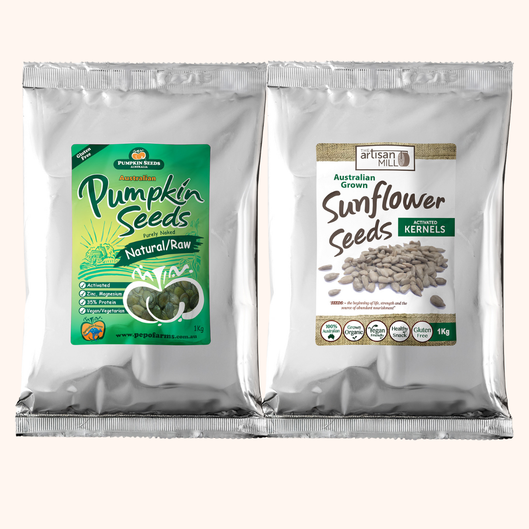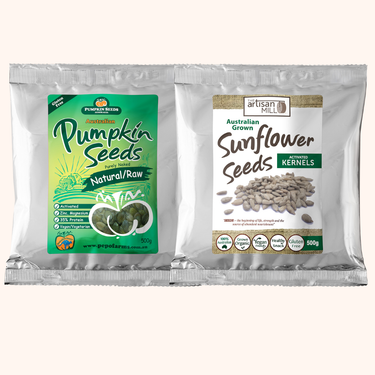 Locally grown pumpkin seeds from Pepo Farms paired with nutritious sunflower seeds from the Riverina — simple, versatile staples that make everyday meals better. Sprinkle them over salads, fold through grains, finish roasted vegetables, or snack straight from the jar.