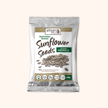 Sustainably grown by farmers in the Riverina region of NSW, our sunflower seeds are creamy, light, and naturally rich in vitamin E, selenium, and plant-based protein. Perfect for muesli, granola, baking, or blending into fresh sunflower seed butter. Minimal processing ensures nutrient integrity and fresh flavour. Pressed and milled in our Ovens, VIC facility, these seeds are a nourishing pantry essential.