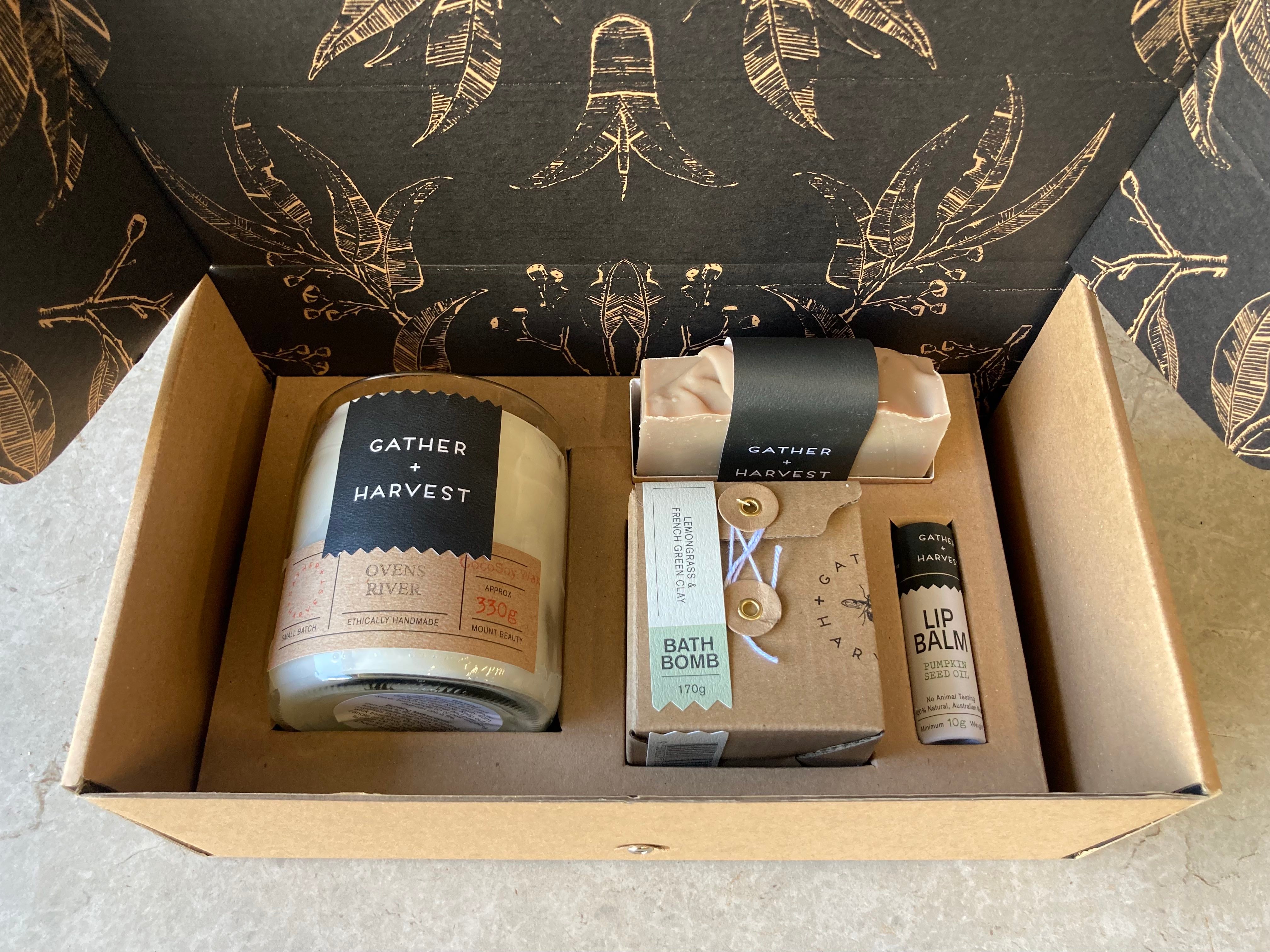 These gift boxes are presented in a beautiful unique Gather & Harvest gift box that is perfect for gifting.